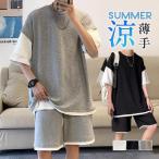 セットアップ メンズ 夏 上下セット 半袖 スウェット 薄手 ハーフパンツ フェイクレイヤード ルームウェア 部屋着