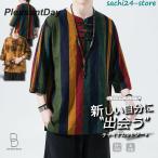 チャイナtシャツ カンフーシャツ ストライプ柄 ボタニカル柄 チャイナボタン 中華風 和風 和柄 涼しい エスニック 部屋着 おうち着 シェア服 メンズ レ