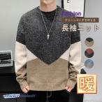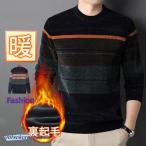 ニット 長袖ニット セーター メンズ メンズファッション クルーネック ストライプ 裏起毛 秋冬 厚手 防寒 寒さ対策 暖かい 半額セール