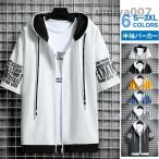 パーカー メンズ 半袖パーカー シャツ カジュアル フード付き パーカ スポーツ ジップアップ 夏用 スポーツ 吸水 フードパーカ 速乾