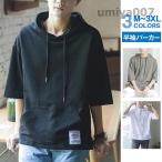 半袖パーカー メンズ トップス Tシャツ 夏パーカー 半袖 通勤 通学 おしゃれ カジュアル フード付き パーカ 夏用 薄手 吸汗 速乾 無地 五分袖