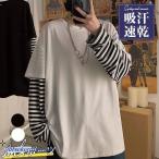 tシャツ Tシャツ 長袖 メンズ ロング 重ね着 レイヤード風 ボーダー 春服 秋 カットソー ゆったり ロンT トップス インナー 高校生 学生