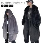 ロング丈 毛皮コート フェイクファー メンズ ゆったり ボアコート フード付き 厚手 ロング ファーコート フリースコート オーバーサイズ フェイクフ