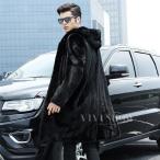 ファーコート メンズ 毛皮コート ミンク フェイクファー ロングコート フード付き おしゃれ 上着 暖かい 真冬 秋冬 防寒 お洒落 メンズファッション
