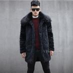 毛皮コート ファーコート メンズ アウター ロングコート ロング丈 切り替え ファー フェイクファー モコモコ 冬 防寒 かっこいい 高級感 おしゃれ
