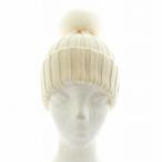 モンクレール MONCLER BERRETTO 帽子 ニット帽 ウール 毛皮 フォックスファー ポンポン ロゴ ワッペン アイボリー