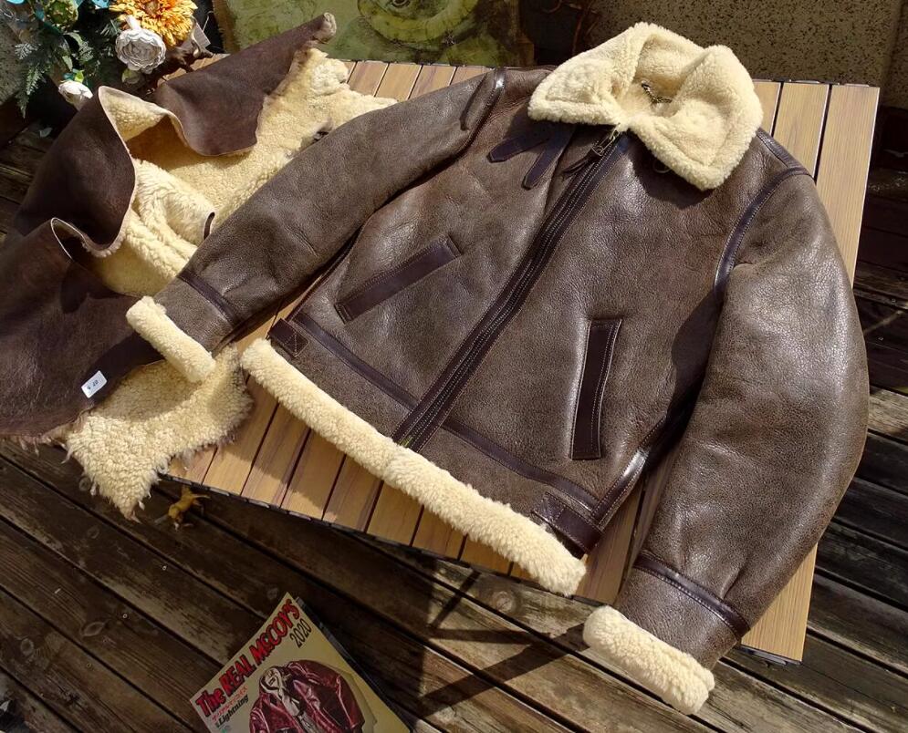 B3羊革 天然革 フライトジャケット ムートン コート 毛皮一体 保温 シープスキン 本革 防寒服 ラムレザー S~5XL