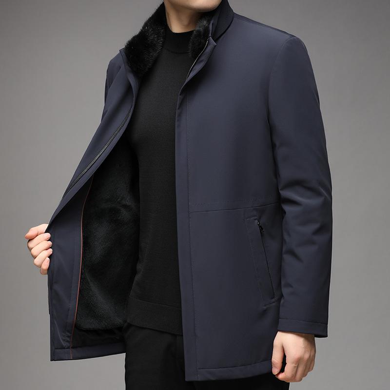 ファーコート メンズ ミドル丈 セミロング ミンク襟 ラビットライナー 本毛皮 男性用 秋冬 防寒 アウター ジャケット ブルゾン ビジネス カジュアル デイリー 普段使い ゆったり ブルー 30代 40代 50代