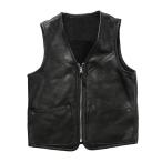 ラムレザー レザーベスト メンズ 袖なし ライダースベスト 毛皮一体 チョッキ ジレ 裏ボア 革ジャン スリム 前開き コート お洒落