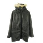 未使用品 ドックランド DOCK LAND モッズコート ラムレザー 本革 中綿 フーディ ジップアップ 袖リブ ラクーンファー 毛皮 L 黒