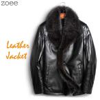 レザージャケット メンズ ラムレザー 本革ジャン 長袖 リアルファー襟 紳士 裏起毛 ファー 防寒着 保温 防水 通勤 ビジネス カジュアル 秋冬 男性 大きいサイズ 羊皮 毛皮コート 細身 ラム革コート