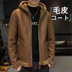 ムートンコート 毛皮コート メンズ ボアジャケット ミリタリー フード付き ロング ブルゾン スエード 防風 ライダース アウター 秋冬 あったか