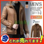 ムートンコート 2WAY ボアジャケット メンズ 毛皮コート 無地 フェイクムートン ブルゾン ファーコート 裏起毛 スエード あったか 防寒
