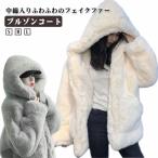 毛皮コート ボアジャケット 秋冬 レデイース フェイクファーコート エコファー モコモコ ブルゾン 防風 防寒 フード付き 羽織り ファージャケット 体型カバー フ