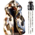 毛皮ベスト メンズ ファーベスト ショートベスト フォックス フェイクファー フード付き おしゃれ アウター 暖かい 冬物 防寒 上着 防風 秋冬