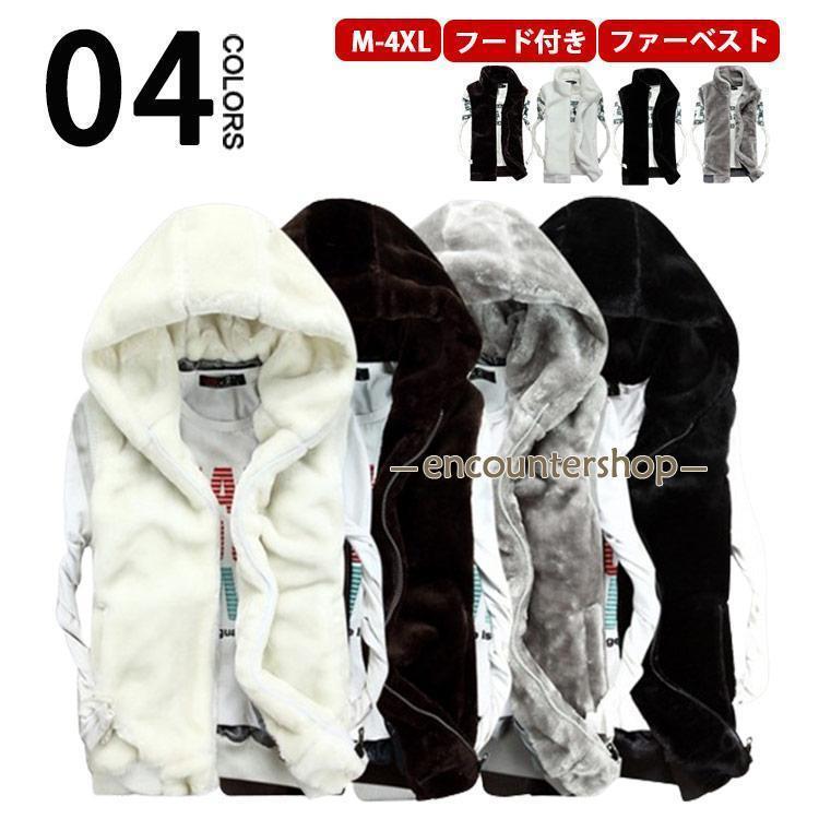 【期間限定10%OFF】ベスト フェイクファー コート フード付き 上着 暖かい メンズ 毛皮ベスト 防寒 秋冬 カジュアル ジャケット 大きいサイズ ファーベスト アウター