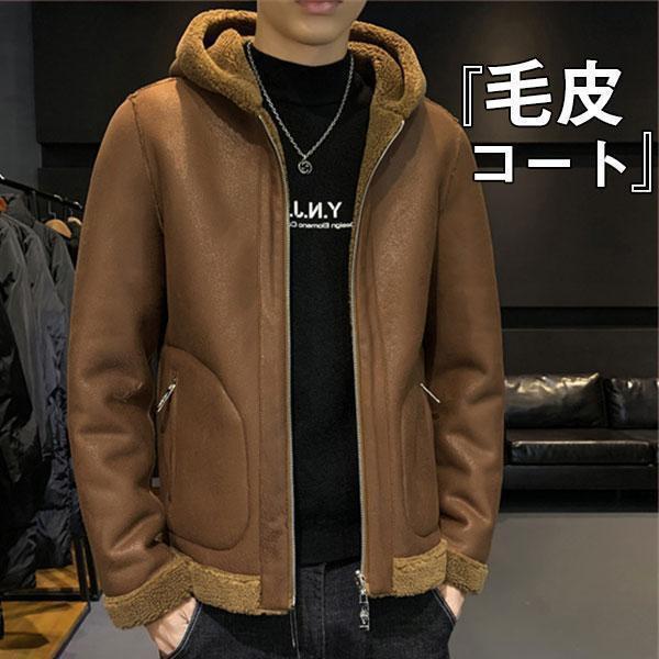 【期間限定10%OFF】ムートンコート ボアジャケット メンズ フェイクムートン ブルゾン ファーコート 毛皮コート フード付き 裏ボア スエード おしゃれ 父の日 防寒 アウター