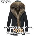 モッズコート 取外し可能なテン毛皮インナー付き ラクーンファー メンズ 秋冬 アウター ブラック M/L/2L/3L/4L/5L i4d05