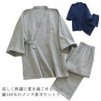 \期間特典限定/ 春夏 パジャマ 上下セット 七分袖 長ズボン 甚平 浴衣 メンズ パジャマ 前開き 綿 無地 おしゃれ 作務衣 ルームウエア ナイトウエア 薄