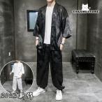 メンズ 夏 上下セット 浴衣風 作務衣 セットアップ 長袖 接触冷感 和式 祭り 男性用 クール感 花火大会 ゆったり 和風 七分丈パンツ 龍柄