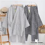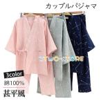 甚平 パジャマ 上下セット メンズ 男性 カップルペア 寝巻き セパレートパジャマ 長ズボン ルームウェア ナイトウエア 春 夏 浴衣 七分袖 綿 二重ガーゼ