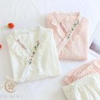 ガーゼ 綿 寝巻き パジャマ 甚平 上下セット ルームウェア ナイトウエア 婦人用 寝間着 長袖 着物 和式 浴衣 入院 介護用 旅館 和風 女性用