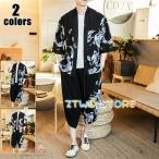 甚平 メンズ 夏 上下セット 浴衣風 作務衣 セットアップ 長袖 接触冷感 和式 祭り 男性用 半被 半纏 クール感 花火大会 ゆったり 和風 七分丈パンツ 龍柄