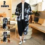 甚平 メンズ 夏 上下セット 浴衣風 作務衣 セットアップ 長袖 接触冷感 和式 祭り 男性用 半被 半纏 クール感 花火大会 ゆったり 和風 七分丈パンツ 龍柄