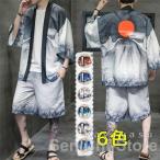 甚平 メンズ 上下セット M-5XL セットアップ じんべい 和式 羽織り 鶴柄 半纏 半ズボン 夏祭り 花火大会 長袖 和風トップス サマージャケット ショートパンツ