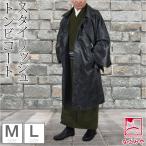 紳士 和装コート 着物コート M・Lサイズ ロング丈 角袖 おしゃれ柄裏地付 比翼ボタン ポリエステル 日本製 黒
