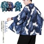 和柄 メンズ 開襟シャツ おしゃれ コート 半袖 羽織 甚平 サマー シャツ シャツ 夏 法被 浴衣 カーディガン 夏祭り ゆったり 甚平 和式パーカー 鳥柄 法被 着物 半纏 はんてん 紫外線防止 男女兼用 花火大会 お祭り 羽織物 和装