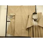 平和屋本店■極上 男性 お召 アンサンブル 長羽織・長襦袢(無双仕立て)・角帯 4点セット 着物:海松茶色 羽織:白茶色 逸品 DZAB1196kh5