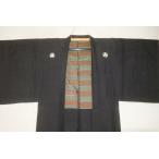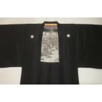 弐11409 本絹京泥染紬 黒紋付羽織 裄66丈105К黒地の粗細 丸に福の角字