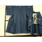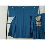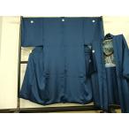 平和屋着物●男性 色紋付・羽織セット 菱地紋 青藍色 キングサイズ 洗える着物 AABF0699fy