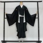 男紋付 男着物 黒紋付 正絹 羽織 長着 裄70.8cm M size 黒 五つ紋 中古 成人式 舞台衣装 4902