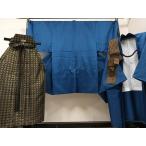 平和屋着物●男性 色紋付 羽織・行灯袴・ワンタッチ角帯セット 花菱地紋 藍色 正絹 逸品 AABF8770ph