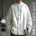 配色ステッチ シャツ メンズ 長袖 バンドカラー 送料無料・メール便不可