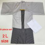紋付袴 6点セット 着物 羽織 袴 長襦袢 羽織紐 角帯 裄72cm 袴丈91cm 2L グレー 五つ紋 中古 4496