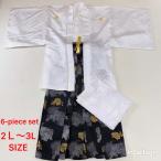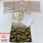 紋付袴 6点セット 着物 羽織 袴 長襦袢 羽織紐 角帯 裄77.5cm 袴丈93.5cm 2L〜3L 白 五つ紋 中古 4506