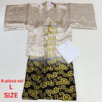 紋付袴 6点セット 着物 羽織 袴 長襦袢 羽織紐 角帯 裄74.5cm 袴丈93.5cm 2L〜3L 白 五つ紋 中古 4510