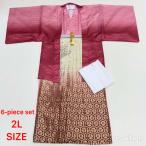 紋付袴 6点セット 着物 羽織 袴 長襦袢 羽織紐 角帯 裄73cm 袴丈91.5cm 2L ピンク 五つ紋 中古 4501