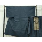 平和屋着物#極上 男性 長羽織 キングサイズ 髭紬 藍鉄色地 羽織紐付き 逸品 DZAB2453kh6