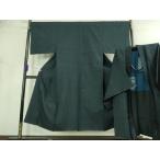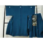 平和屋着物●男性 紬 羽織セット 着物:青藍色 羽織:留紺色 正絹 逸品 CABD0119ut