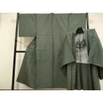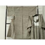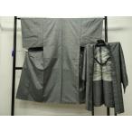 平和屋着物●男性 紬 髭紬羽織セット 色無地 灰色 正絹 逸品 未使用 CABC8042gh