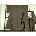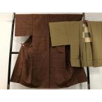 平和屋着物●男性 色紋付 羽織セット 花菱地紋 葡萄茶色 洗える着物 AABF6071ph