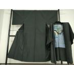平和屋着物●男性 黒紋付 長羽織セット 羽裏:風景文 正絹 逸品 DABB0843ud