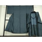 平和屋着物●極上 男性 髭紬 アンサンブル 長羽織 濃い鉄御納戸色 逸品 未使用 DZAB3414kh6