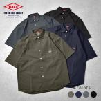 レギュラーカラーシャツ 半袖 メンズ ストレッチ 吸汗速乾 ドライ 伸縮 涼しい 軽い 無地 羽織 ロゴワッペン 胸ポケット カジュアル シンプル 夏 春 BALL 55722