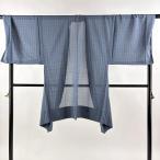 美品 男着物 身丈103cm 裄丈76cm L 羽織 よろけ縞 青灰色 正絹 逸品 中古