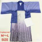 紋付袴 5点セット 着物 羽織 袴 長襦袢 角帯 裄70.6cm 袴丈86cm M〜L 紫 グレー 五つ紋 中古 4518